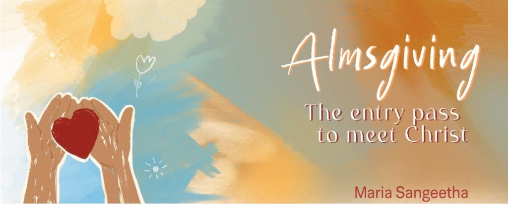 Secondly in almsgiving, we encounter our own humanity. Until and unless we recognise a brother in that person who is less privileged the homeless, the voiceless, the helpless, the “status-less” person we have not really encountered our own humanity. When we truly value our identity as a human, we will be able to see with compassion every other person,especially those who are suffering. Today we live in a very materialistic world where everything has been objectified. Everything has a price tag even human beings. Today you and I could have slipped into this sick mentality, where we evaluate ourselves by how much we have accomplished, our material assets, how many people honour us, and how presentable is our physical appearance. If we evaluate ourselves by such superficial standards, we still haven’t encountered ourselves as a human person. We still haven’t learned to love ourselves. For this we need to experience God’s personal love for us as His children. Then we would love ourselves. In the joy of being held by our Father God, our hearts resonate with the heart of God, and we cannot but see that every human person is a precious brother and sister. They may be less privileged, but they are no lesser a brother, a sister, they are no lesser a human.